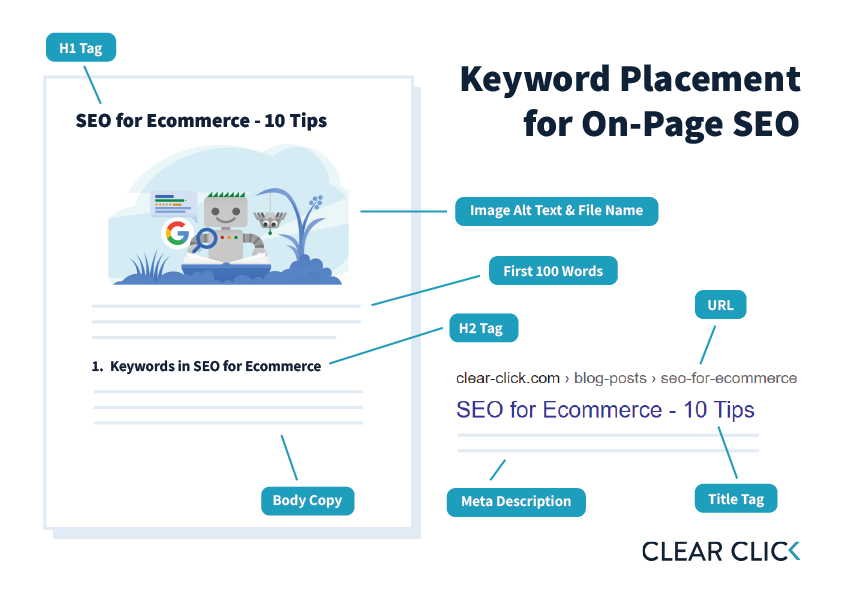 Once you have identified the right keywords to use on your page, it’s vital to place them strategically to maximise traffic. Appropriate keyword placement allows search engines to index your site for those keywords, resulting in a higher ranking on the SERP.